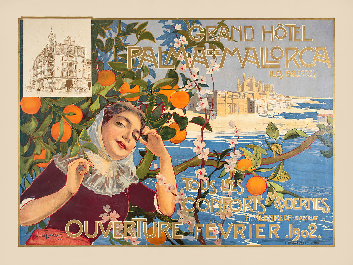 Palma de Mallorca Travel Poster: Grand Hôtel by Joan Llaverias, 1901