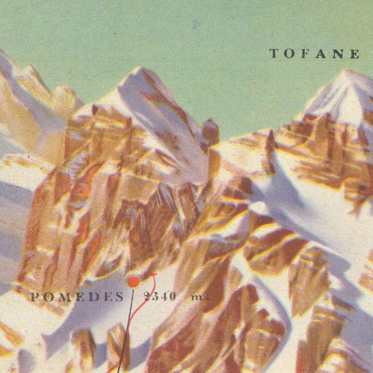 Old Map of Cortina d'Ampezzo, VII Winter Olympics, 1956: Tofane, Cristallo, Misurina, Dolomites, Giau
