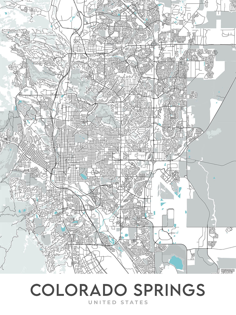 Questa mappa è un must-have per chi ama Colorado Springs o per chi apprezza l'arte e il design moderni. Ordina la tua copia oggi!