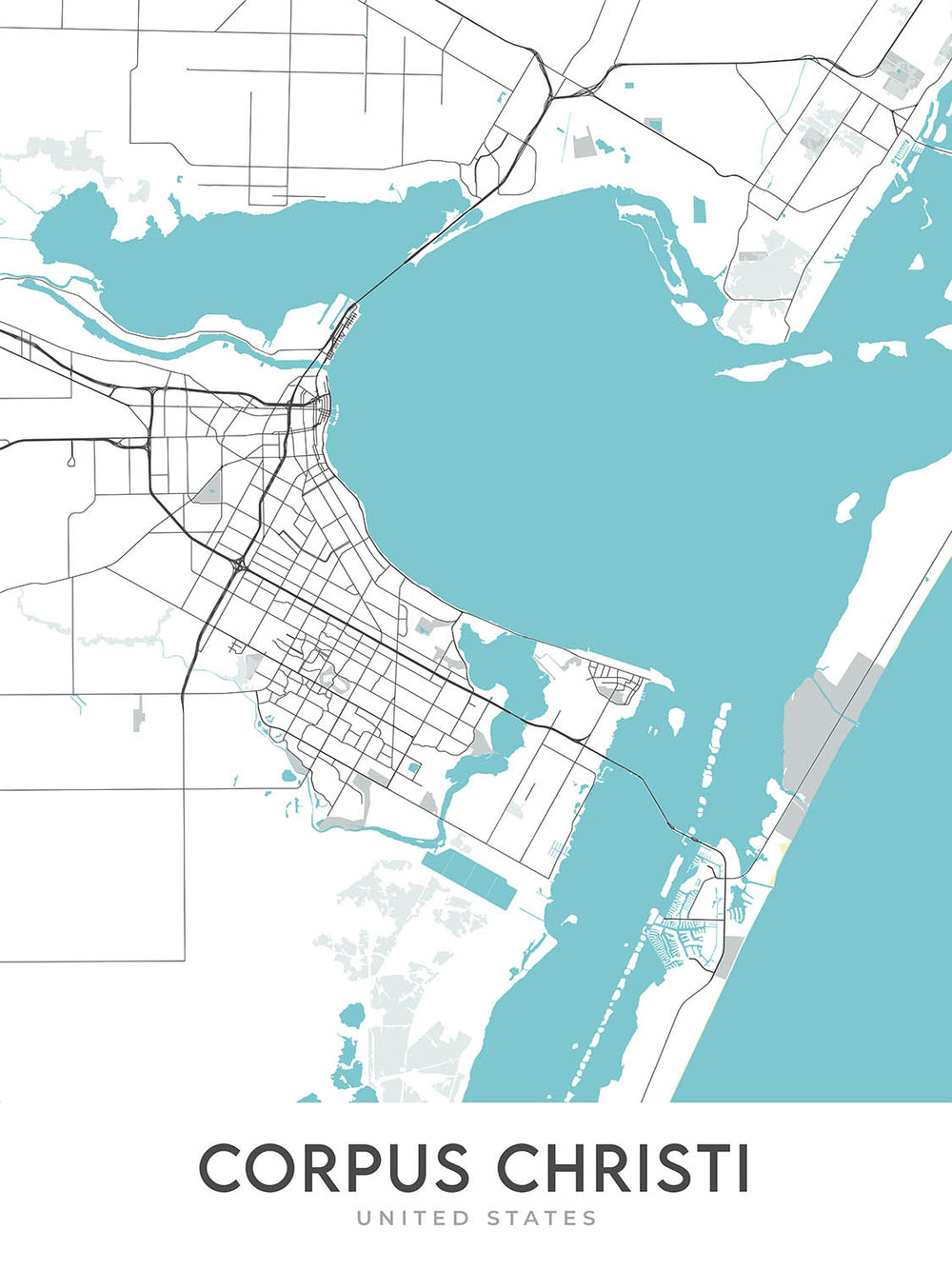 Questa mappa di Corpus Christi è il modo perfetto per aggiungere un tocco di stile moderno al tuo arredamento, ed è sicura di essere un argomento di conversazione per chiunque visiti la tua casa. Ordina la tua mappa oggi e inizia a esplorare la città di Corpus Christi!