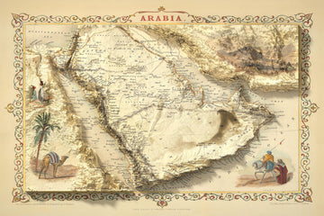 Inciso da John Rapkin e pubblicato da J. Tallis & Co nel 1851, questa è una delle più belle e dettagliate mappe storiche della Penisola Arabica, o semplicemente "Arabia" come era conosciuta all'epoca.