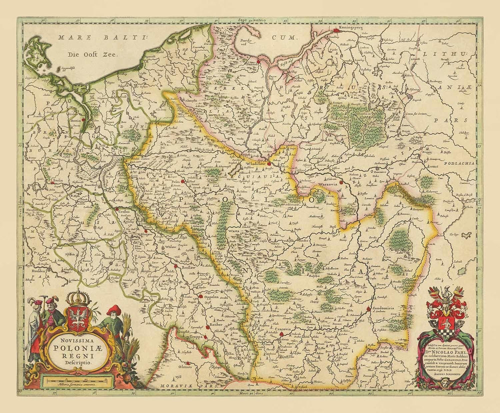 Vecchia mappa della Polonia di Jan Jansson, 1640: Germania, Prussia, Lituania, Slesia, Lusazia, Varsavia, Berlino, Cracovia