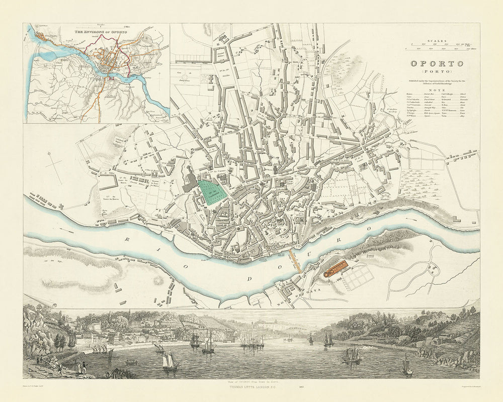 - Luoghi Notabili: Torre da Marca, Chiesa di San Cristovao, Seminario del Vescovo, Convento Carmelitano, Chiesa di San Francesco, Palazzo Episcopale, Cattedrale, Chiesa di San Giovanni, Nuova Dogana, Borsa, Teatro, Caserma, Piazza Ribeira, Dogana, Bolsa, Chiesa di San Francesco, Chiesa di San Antonio, Chiesa dei Clerigos, Chiesa di San Ildefonso, Ospedale di San Lazzaro, Convento Cappuccino, Orfanotrofio Bom Fim, Nuovo Mercato, Chiesa di Santa Caterina, Chiesa di San Michele, Chiesa Carmelitana, Convento di San Benedetto, Chiesa di San Domenico, Convento di Santa Chiara, Nuovo Ponte, Fontana Fonte Nova, Fontana Arcada, Ponte di San Giovanni, Fontana Wellesley, Batteria di Lord Wellington