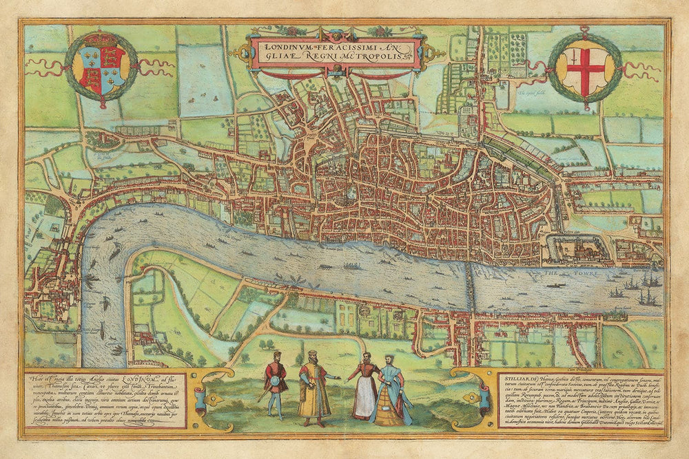 Se stai cercando ulteriori opzioni, ho un'altra interessante Mappa Antica di Londra di Georg Braun nel 1572.