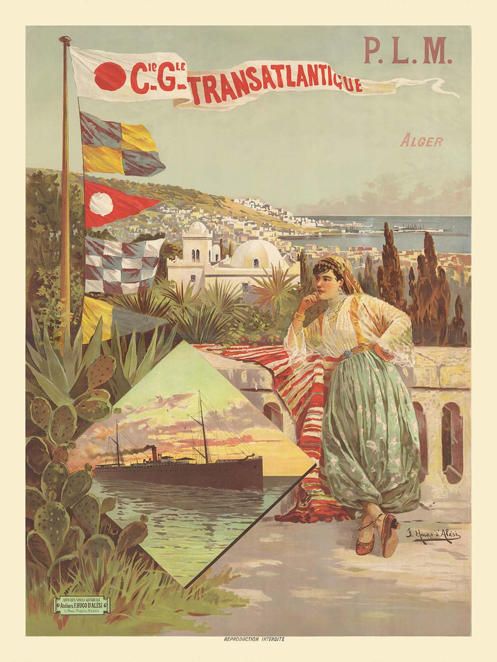 Algiers Travel Poster: P.L.M. Cie Gle Transatlantique by Frédéric Hugo d’Alési, 1898