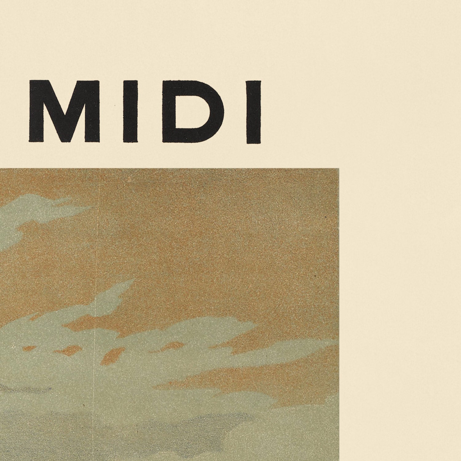 The poster’s palette harmonizes greens, sunlit yellows, and soft blue notes to evoke heat, stone, and sky. Grasset’s trademark flat color fields and crisp outlines make the fortress read like an emblem, while the Art Nouveau lettering anchors the scene with period elegance. In interiors, those sage greens and golden ochres pair beautifully with natural wood, rattan, brass, and linen, making this an easy statement piece for living rooms, studies, and entryways. It’s the ideal print for anyone who has wandered Carcassonne’s ramparts—or who dreams of it.