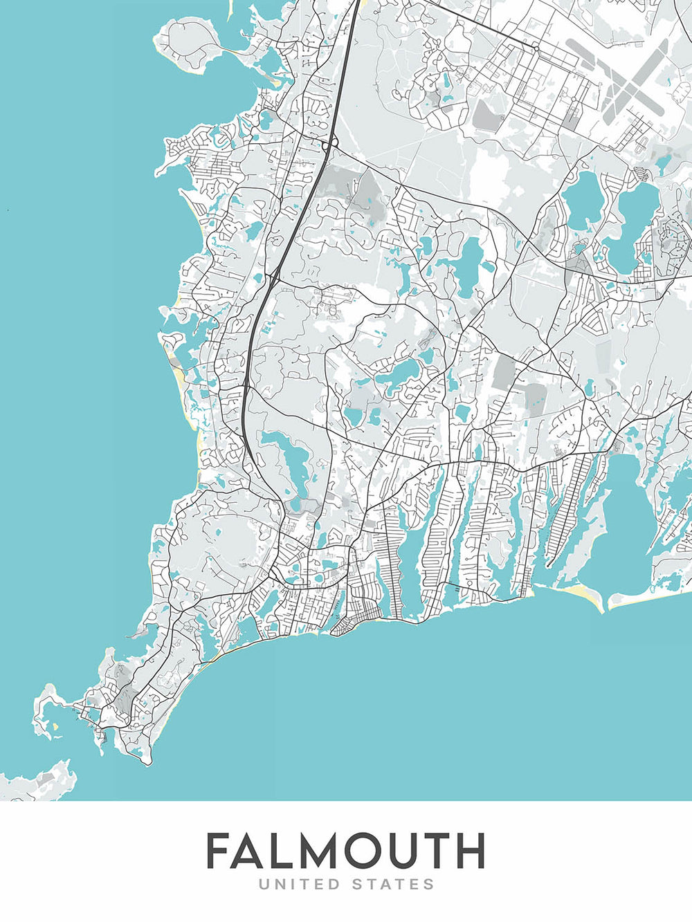 Overall, this map of Falmouth is a must-have for anyone who loves this charming town, appreciates modern design, or simply seeks a beautiful piece of art to enhance their living space. It is a celebration of Falmouth's rich heritage, natural beauty, and vibrant community, and it will bring joy and inspiration to anyone who owns it.