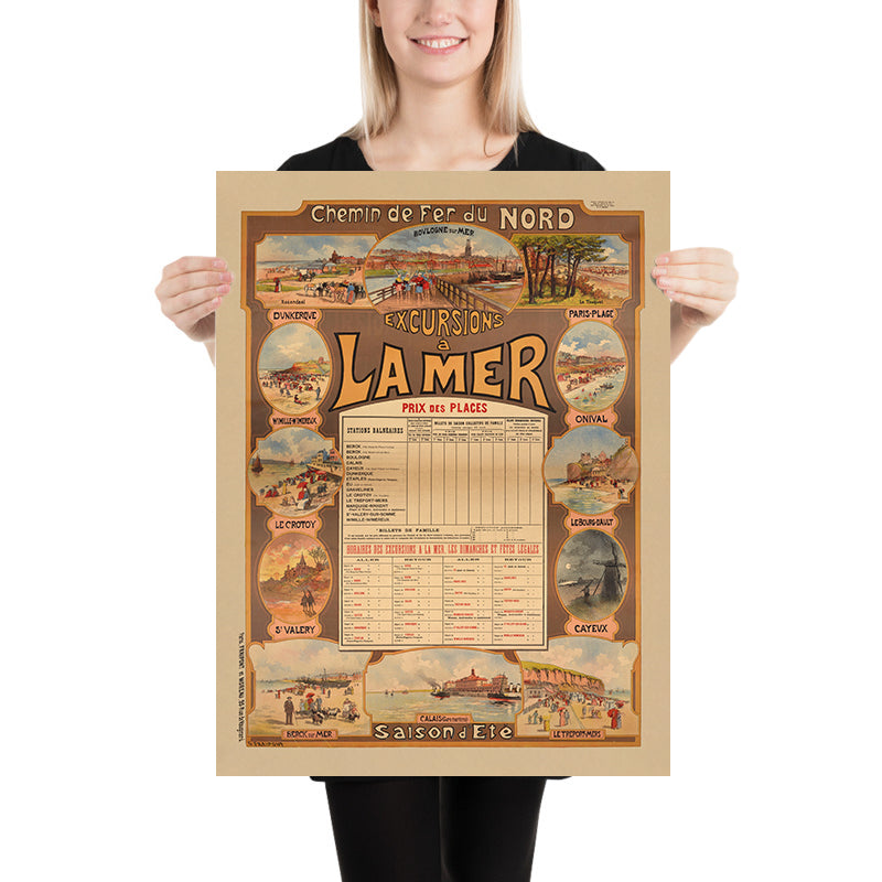 Northern France Travel Poster: Chemin de fer du Nord – Excursions à la mer by Gustave Fraipont, 1890