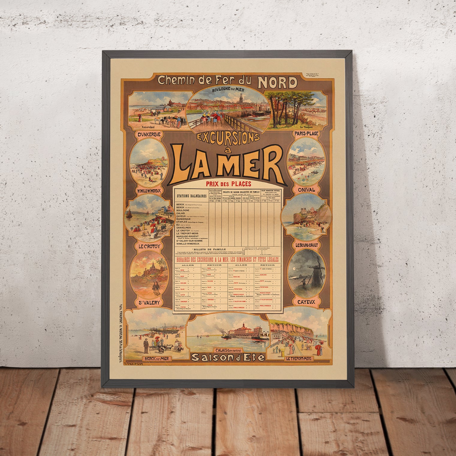 Fraipont’s design language is timeless. Warm brown titling anchors the composition, while sandy beige and golden yellow fields bathe the scene in light. The lithographic textures—soft gradients, crisp outlines, and deft typographic hierarchy—add a tactile charm that suits both contemporary and classic interiors. As wall art, it pairs beautifully with neutral palettes and natural materials, and it resonates with collectors of railwayana, beach lovers, and Francophiles who appreciate Belle Époque elegance.