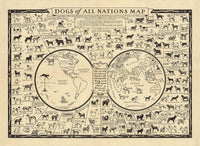 Rare Old Dog Map, 1936: World Atlas Chart of Breeds