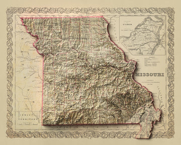 Immerse yourself in the fascinating past of the United States with this captivating old map of Missouri, meticulously crafted by the esteemed mapmaker J. H. Colton in 1860. This piece offers a unique glimpse into a formative period in American history, a time when the nation was still in its infancy and the landscape of Missouri was markedly different from what we know today. It's an extraordinary testament to the relentless march of time, a reminder of how far we've come and how much has changed in the last 150 years.