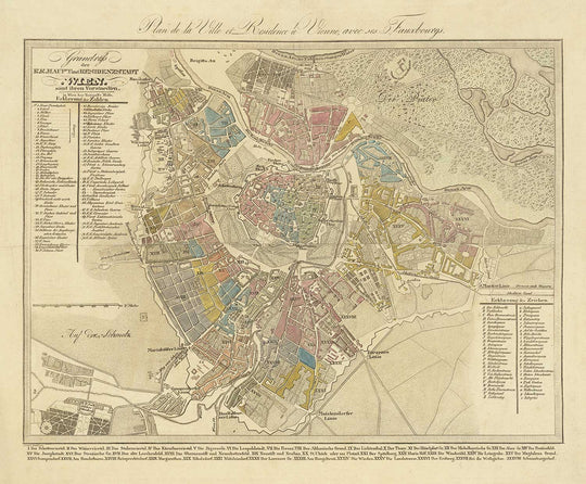 Step back in time with this captivating representation of Vienna, crafted by the renowned cartographer Tranquillo Mollo in the early 19th century. This map provides a unique glimpse into the city's past, highlighting its architectural and geographical evolution. With meticulous attention to detail, Mollo's map captures the essence of Vienna, inviting viewers to explore its historic streets and landmarks.