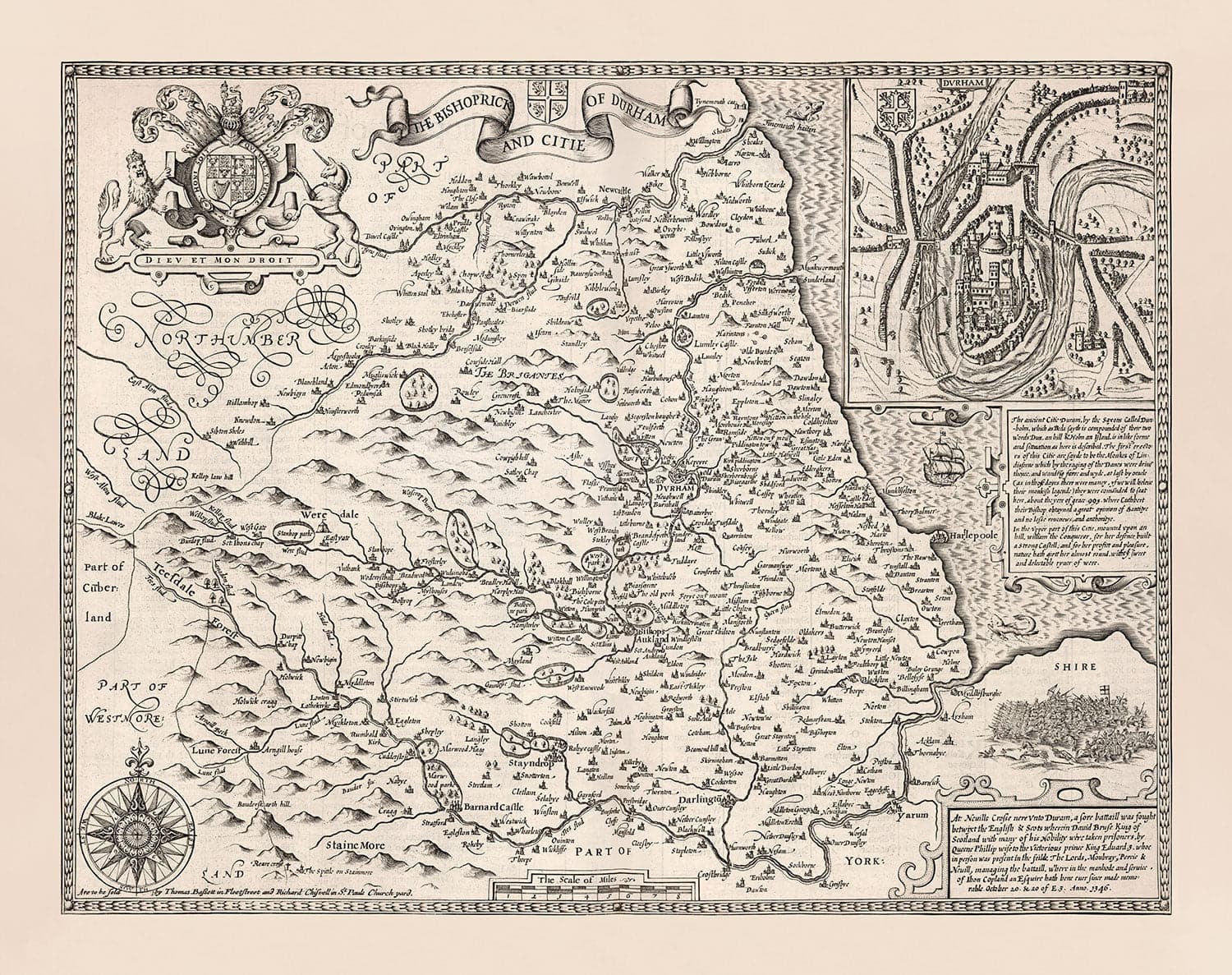 Many of the towns, villages and cities in the Bishopric of Durham are already visible in this map.
