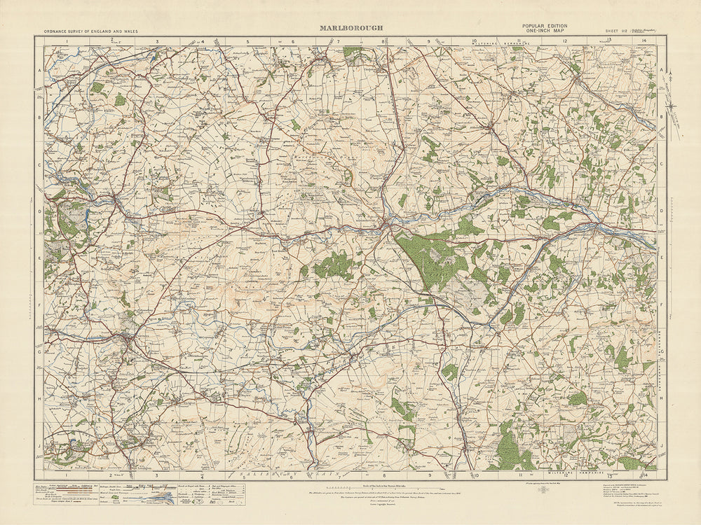 This Old Ordnance Survey Map, Sheet 112 - Marlborough, 1925, is a fascinating piece of cartographic history that provides a unique glimpse into England and Wales during the early 20th century. The map showcases the towns, cities, and interesting features of Marlborough, Calne, Devizes, Hungerford, Lambourn, and the North Wessex Downs Area of Outstanding Natural Beauty (AONB).