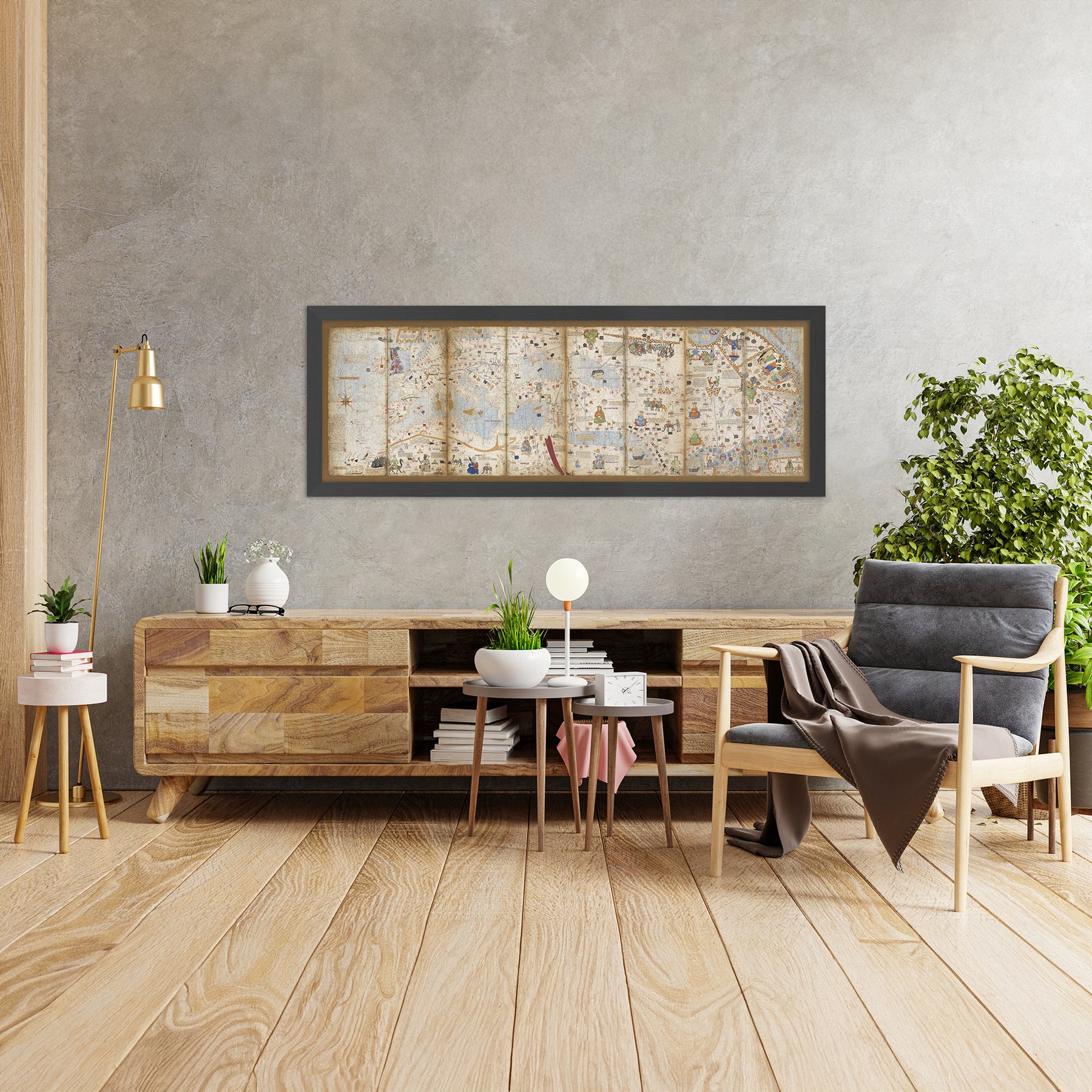 - Detailed depictions of trade routes and a variety of human figures representing different cultures