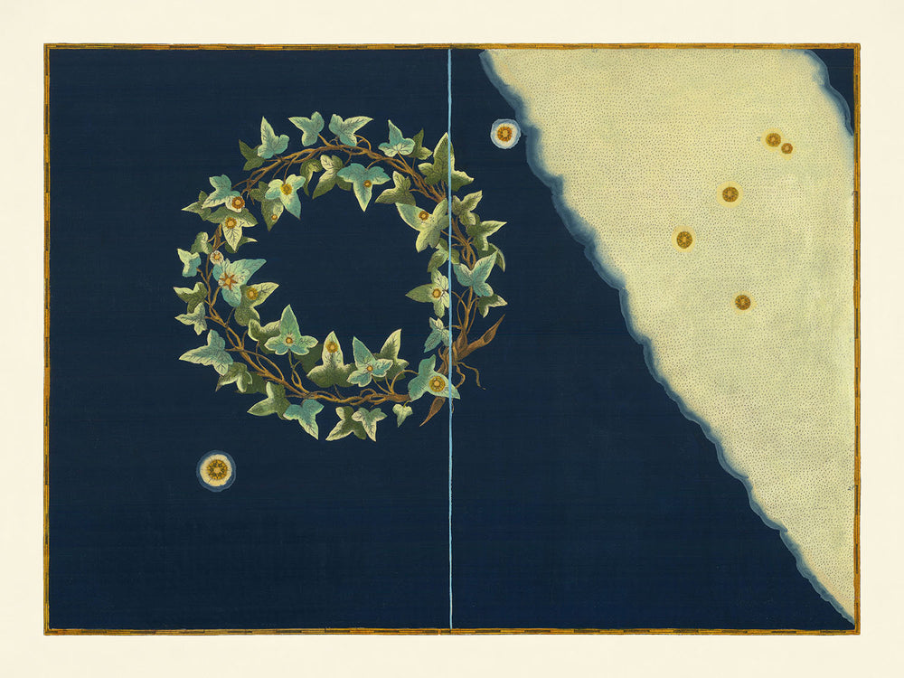 "Old Star Map of Corona Meridionalis" is especially notable for its inclusion in Bayer’s Uranometria, which significantly influenced later astronomical works by Schiller and Kepler. This map uniquely combines stars from ancient observations by Ptolemy with more recent data from voyages of discovery, including those of Frederick de Houtman in the East Indies. The constellation figures themselves are based on the creations of artist Jacobo de Gheyn, adding an extra layer of artistic merit to Bayer’s scientifically groundbreaking work.