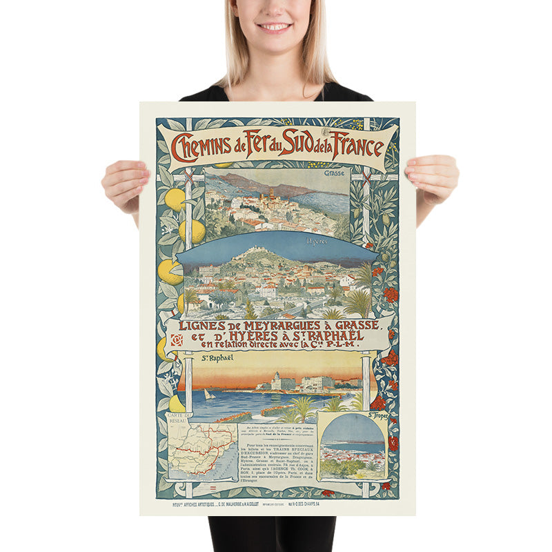 Provence Travel Poster: Lignes de Meyrargues à Grasse by Eugène Grasset, 1891