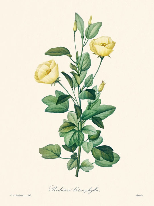 Reduta Heterophylla, first published in 1802, is a splendid Victorian botanical illustration by the immensely talented Pierre-Joseph Redouté. Known as one of the greatest botanical illustrators of all time, Redouté spent years capturing the blossoms of Château de Malmaison for Joséphine Bonaparte, wife of General Napoléon. With such a distinguished patronage and a background as a painting tutor to Marie Antoinette, Redouté's artworks are as rich in history as they are in beauty.
