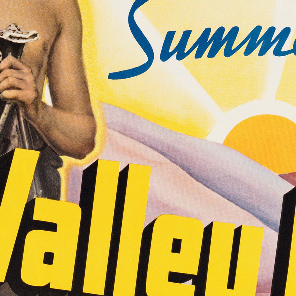 About the subject: Sun Valley was developed by Union Pacific as a purpose‑built ski destination at Ketchum, Idaho, centered on the luxurious Sun Valley Lodge. The resort quickly became synonymous with winter glamour and sunshine, thanks to dry mountain air and abundant snow, and it was among the first places in the world to feature modern chairlifts—turning a remote alpine valley into a household name. This poster’s headline, “Winter Sports Under a Summer Sun,” encapsulates that winning formula.